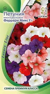Суперполу-ампельнаясерия петунии Феррари!Формирует новые цветоносные побеги в середине куста, не оставляя пустот (это происходит с обычными ампельными петуниями).Растения высотой 15-17см,ветвистые, ширина куста 50-60см, все очень плотно усыпаныцветками, цветётпышно весь сезон.Цветки крупные 8-10 см в диаметре, очень яркие. Прекрасно сохраняют свою декоративность под воздействием дождя и ветра.Обильное, длительное цветение и неприхотливость позволяет использовать петунии во всех видах цветочного озеленения: для оформления бордюров, украшения балконов, при создании композиций на клумбах, в подвесных корзинах и кашпо.